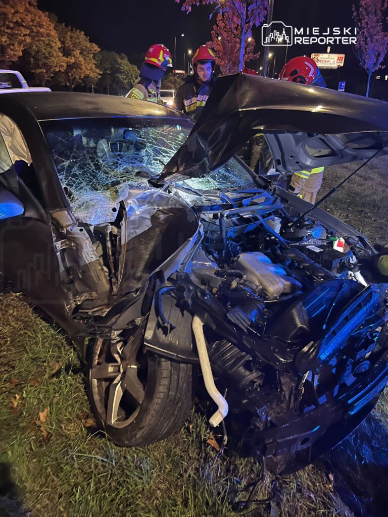 On Sunday at about 21:00 on Modlińska Street in Białołęka, the driver of a Hyundai lost control, knocked over a tree, and struck a roadside pole, with no injuries reported.