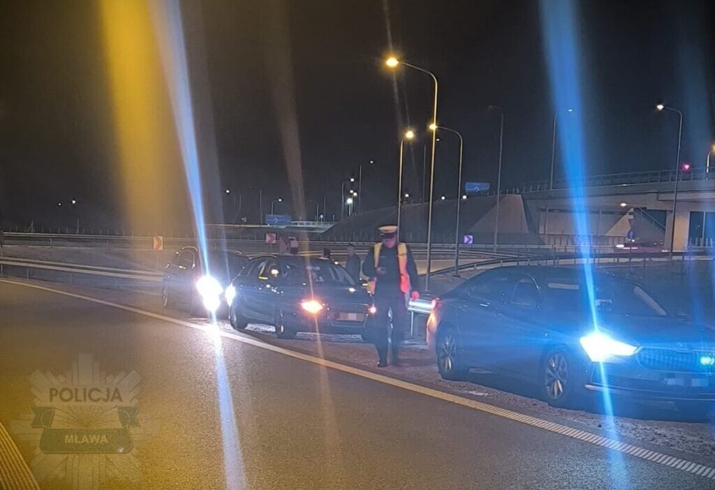 On Saturday evening, March 22nd, officers from the Mława County Police Traffic Department stopped two drivers engaged in an illegal race on the S7 expressway. The drivers, operating an Audi and a Skoda, occupied both lanes of traffic, racing and exceeding the speed limit by 80 km/h.