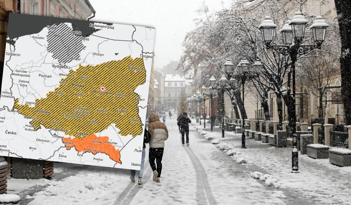IMGW forecasters have issued first‑level alerts for cold, dangerous precipitation in the following divisions: Masovian; Lower Silesian (except Bolesławiec and Legnica counties); Opole (except Głubczyce County); Lesser Poland (except counties where second‑level alerts apply); Świętokrzyskie; Silesian (north counties); Lesser Poland (Kazimierza, Kraków, Chrzanów, Miechów, Olkusz counties); Lublin; Podlaskie (except northern counties); Kuyavian‑Pomeranian (Rypin, Lipno, Włocławek, Aleksandrów, Radziejów counties); Łódź; and Greater Poland (Miłaków, Krotoszy, Ostrołęka, Kępa, Koni…).