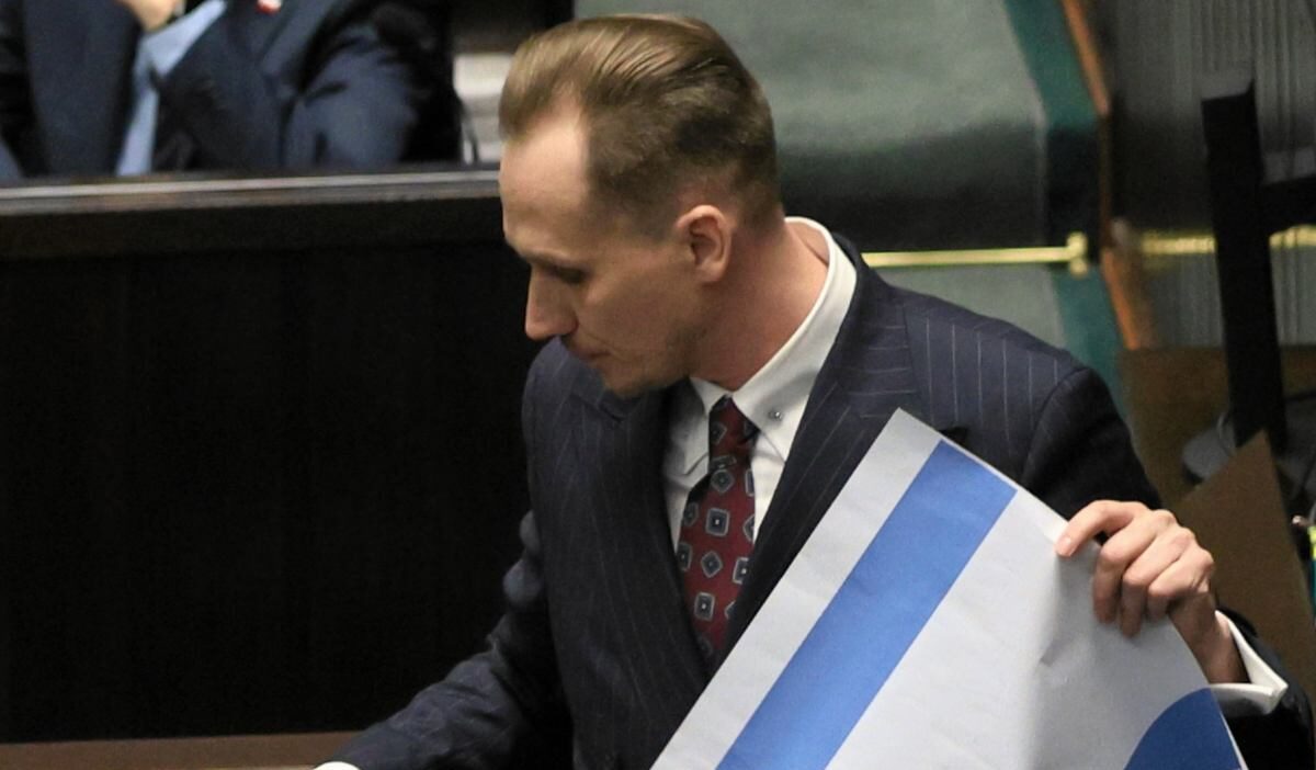 Israel’s Foreign Ministry condemned Polish MP Konrad Berkowicz for displaying a swastika-emblazoned Israeli flag in parliament, prompting a diplomatic dispute and legal scrutiny.