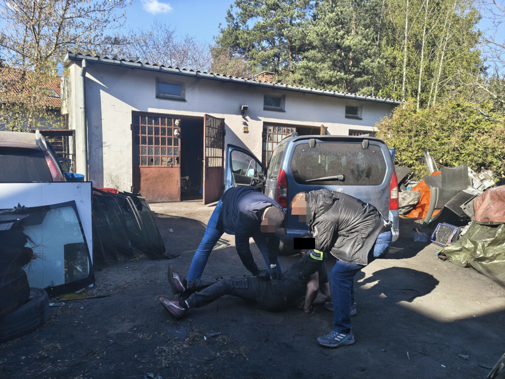 Polish authorities dismantled a car theft operation in Wołomin County, arresting two men and recovering stolen vehicle parts and drugs.