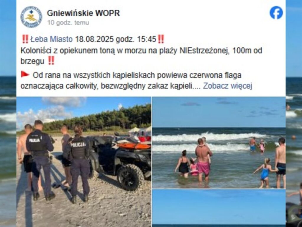 Dangerous situation in Łeba as six people, including five children, began to drown. “Campers with their guardian are drowning in the sea at an unattended beach, 100 m from the shore,” reports the Volunteer Water Rescue Service (WOPR). What do we know about the incident?