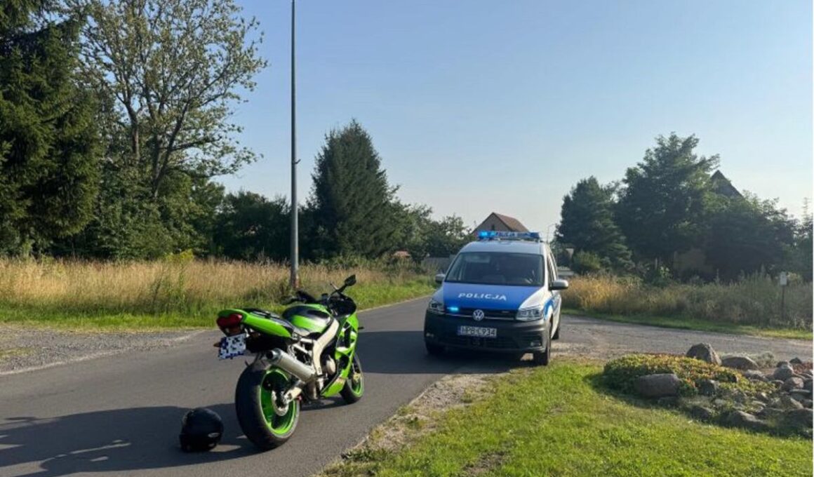 A traffic incident occurred last week when a motorcyclist attempted to overtake another vehicle directly at an intersection. Police report that, despite visual and auditory signals given to stop, the rider fled. At times, the speedometer reached over 220 km/h as he headed toward the Lubań County area.