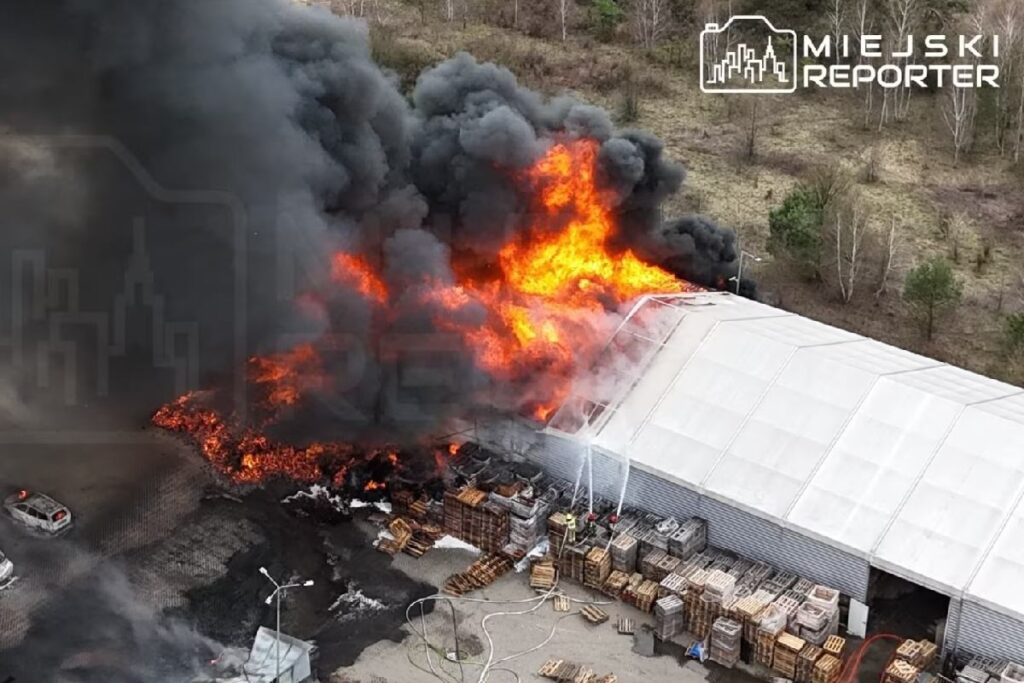 A large fire broke out at a wholesale warehouse in Łomna, near Warsaw, on Wednesday, April 8th, around 2:30 PM, with no initial reports of injuries.