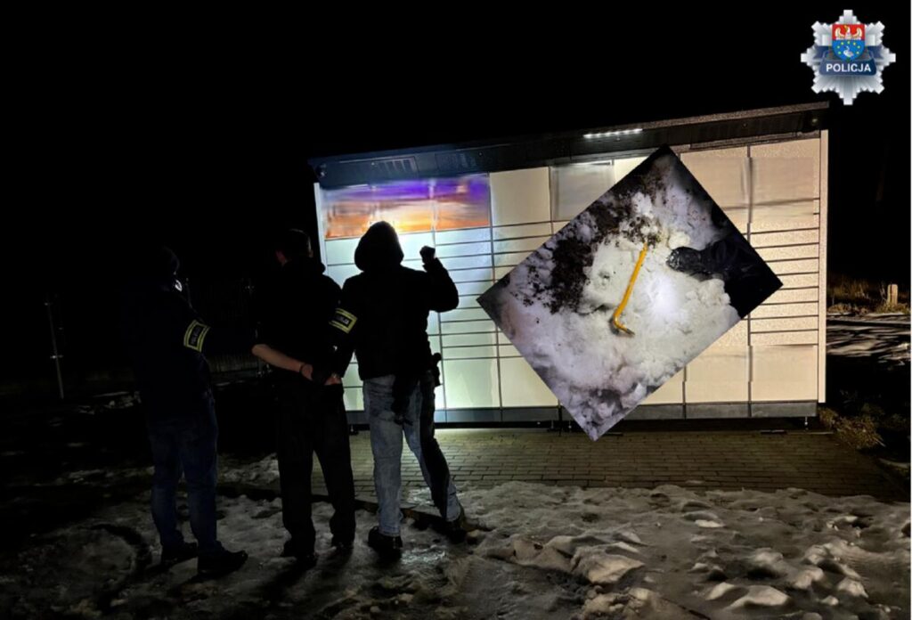 The apprehension of the 36-year-old resident of Legnica occurred during the night from January 15 to 16 at 3:10 AM in Trzcinica in the Greater Poland Voivodeship. Officers noticed the man as he was walking with a crowbar towards a parcel machine.