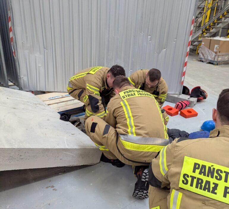 On Saturday, February 14, 2026, at one of the production facilities in Nowy Dwór Mazowiecki, an accident occurred in which approximately a 60-year-old man was crushed by concrete slabs. The injured person was taken to the hospital with suspected leg injuries, including fractures.