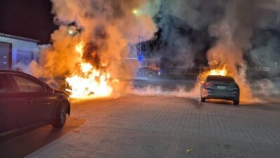 Two BMW Cars Burn Completely in Parking Lot Fire