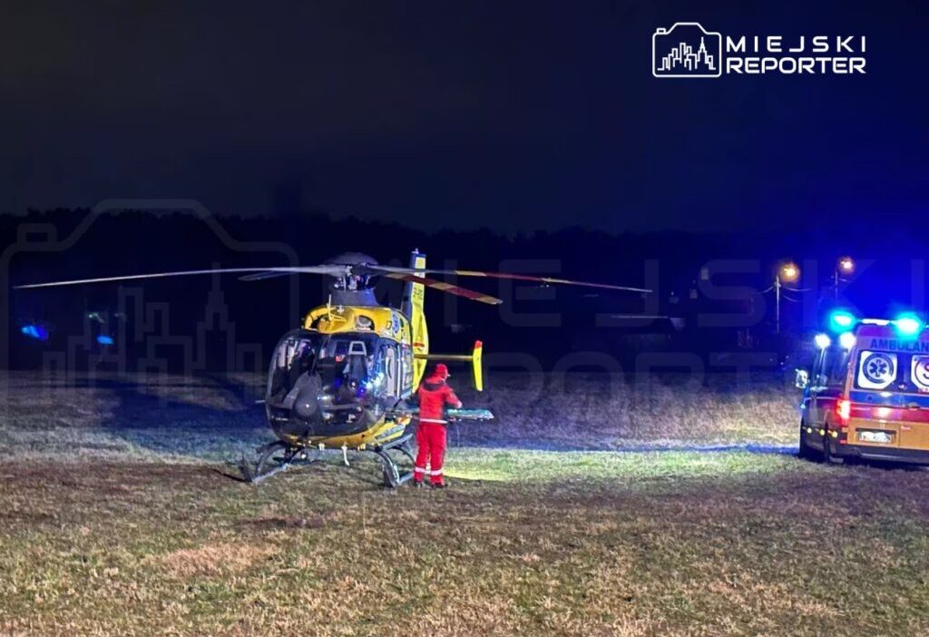 Seven fire crews are involved in the operation, alongside a medical rescue team and a crew from the Helicopter Emergency Medical Service (Ratownik 5).