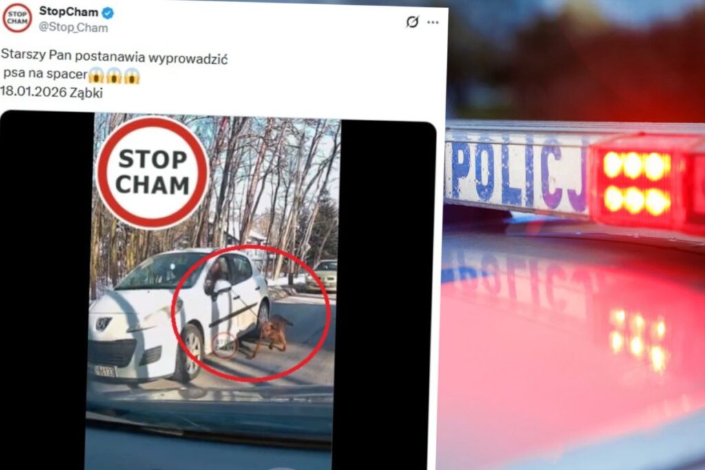 On Sunday (January 18), the Stop Cham channel published a video from Ząbek (Mazowieckie Province). The footage shows a man driving a car while holding a dog on a leash that was running alongside the vehicle.
