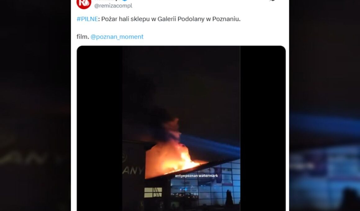 About eleven fire units were dispatched to the Strzeszyńska 65 location after reports of explosions and flames, some of which appeared on the mall’s roof.