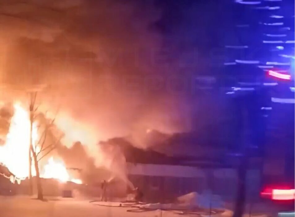 On Wednesday, February 18th, at 4:37 AM, a fire broke out at a furniture production facility located in Dzierżenin (Pokrzywnica commune, Pułtusk county), directly adjacent to national road no. 61. The fire engulfed a section of container workshops and rapidly spread to an adjacent building.