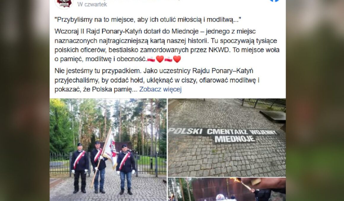 The organizing group, Association Kołaczę Polskę, posted on Facebook about the event: “Yesterday, the II Ponary-Katyn Ride reached Mednoje, a place marked by the most tragic chapter in our history. This is where thousands of Polish officers were brutally murdered by the NKVD. The cemetery calls for memory, prayer, and presence…”