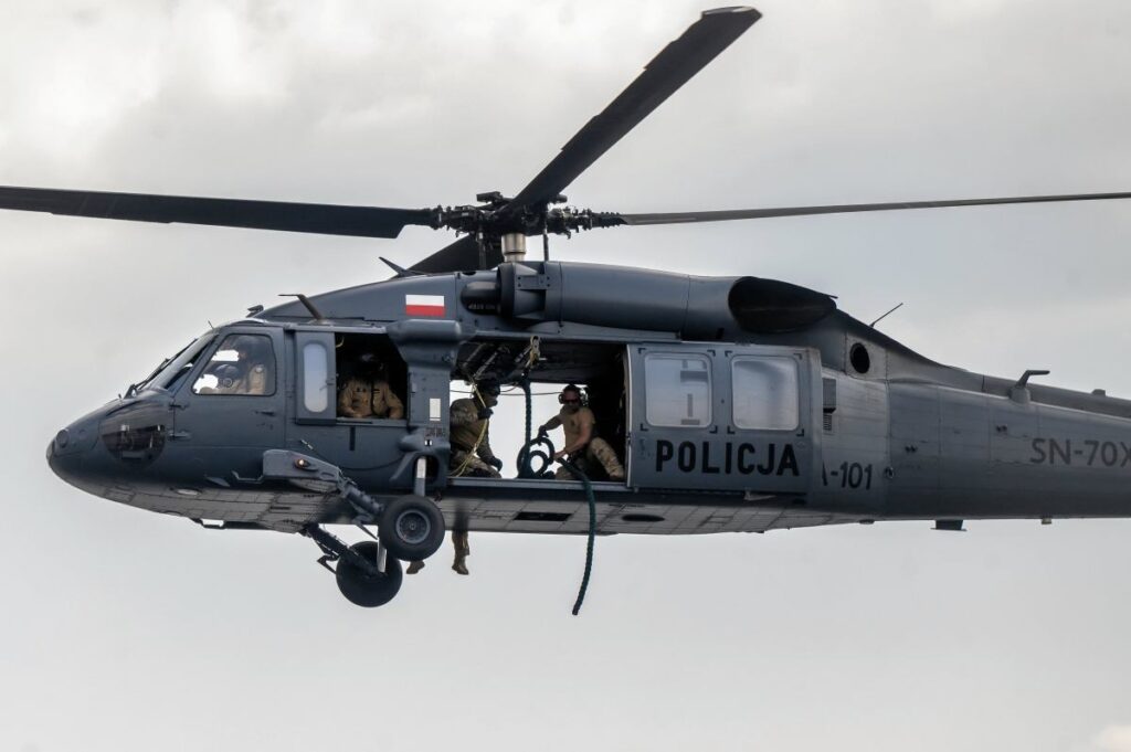 Police helicopter over Warsaw