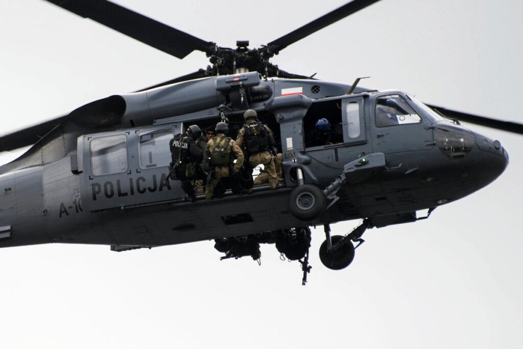 A police helicopter, a Black Hawk, was used during the operation, as first reported by TVN24, with footage showing the aircraft in action.