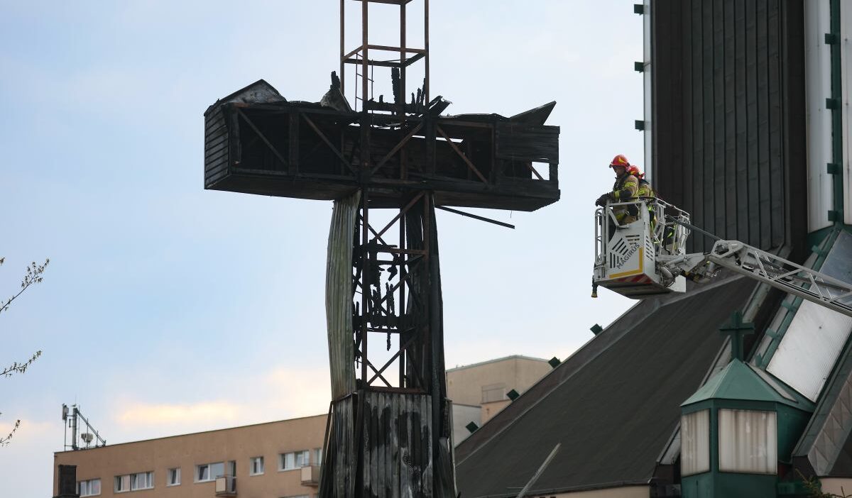 A fire broke out on Good Friday before the Church of St. Maximilian Maria Kolbe on Rzymowskiego Street in Warsaw, damaging a metal and wood cross. The cross commemorated a mass celebrated by Pope John Paul II on Victory Square (now Piłsudski Square) on June 2, 1979, during his first pilgrimage to Poland.
