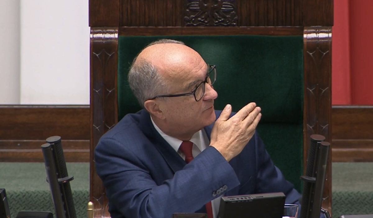 Justice Minister Waldemar Żurek was asked to leave the Sejm chamber by Speaker Włodzimierz Czarzasty while preparing for a TV interview.