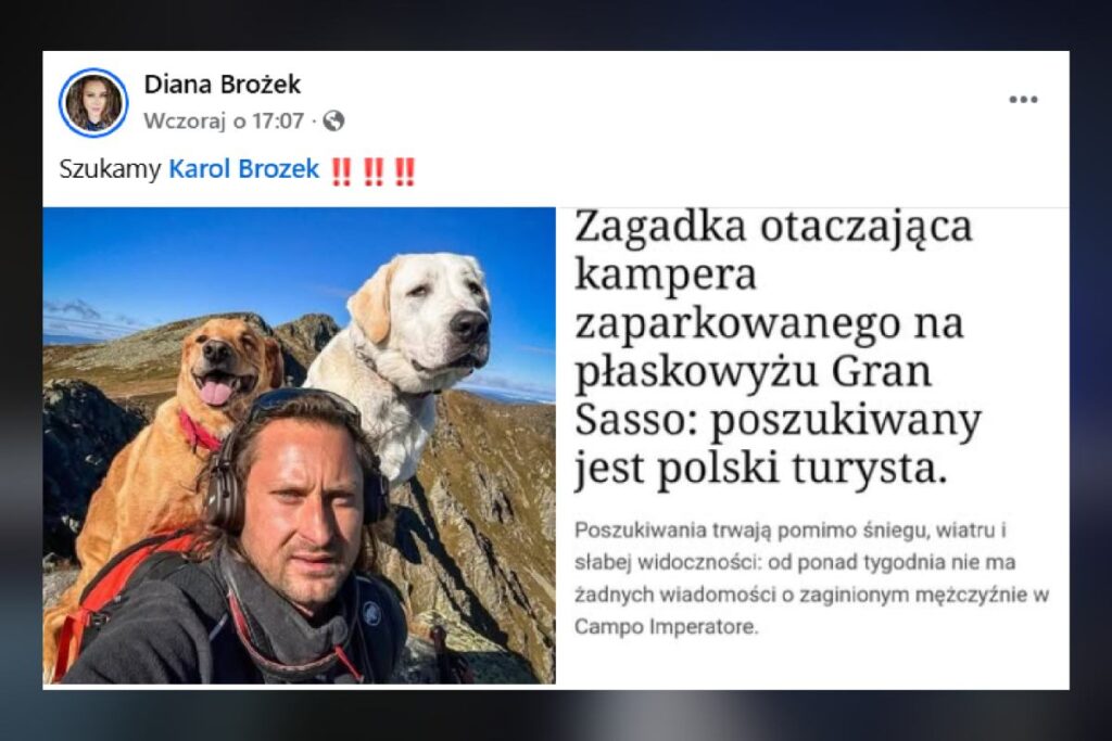 Sister Diana Brożek informed Italian media that Brożek last reached out to his family on 18 November, and has appealed for help in the search.