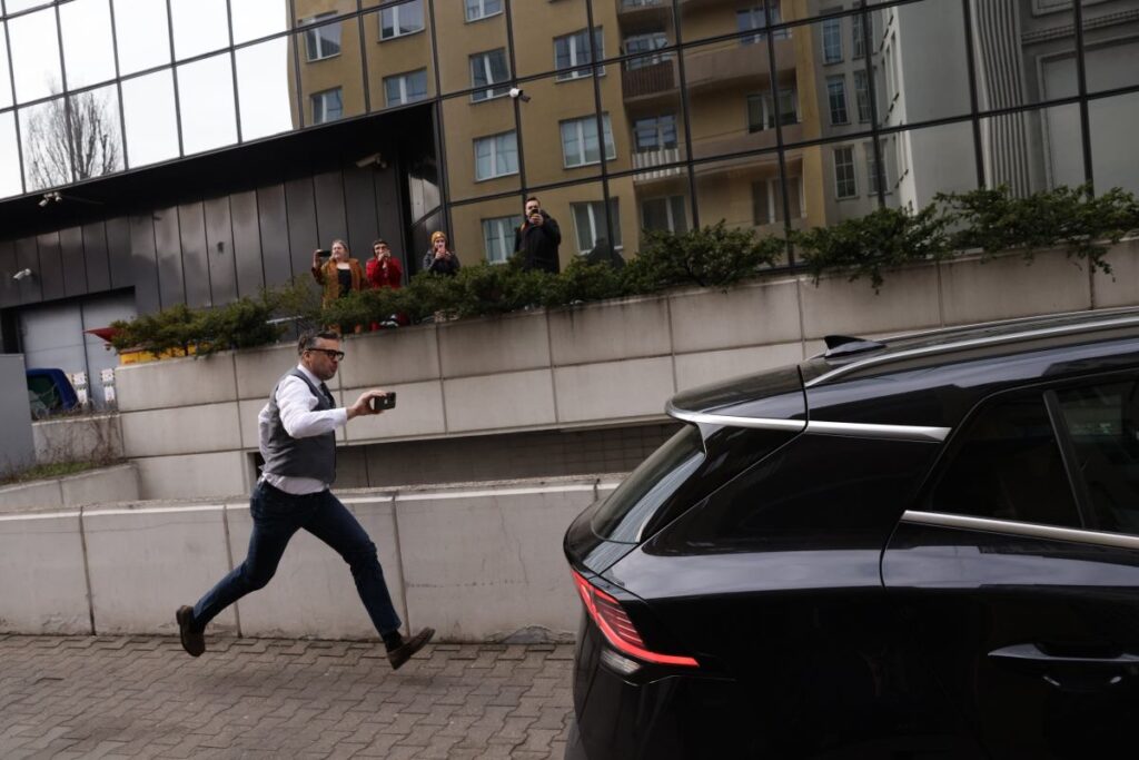 As Ziobro’s car was leaving the television station, TV Republika presenter Michał Rachoń ran after it. Officers were bringing Ziobro before a parliamentary investigative committee regarding Pegasus.