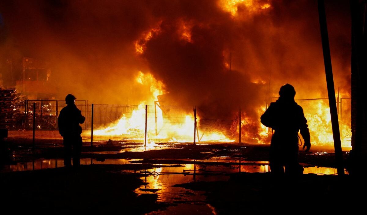 Russian attacks in Kyiv caused fires in both residential and non-residential buildings, as well as vehicles. A building was damaged in the Obolon district, leading to subsequent fires. Four paramedics were injured.
