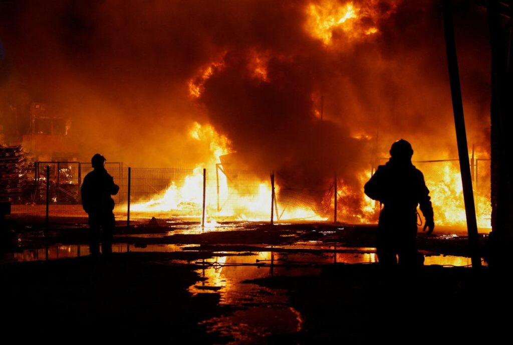 Russian attacks in Kyiv caused fires in both residential and non-residential buildings, as well as vehicles. A building was damaged in the Obolon district, leading to subsequent fires. Four paramedics were injured.