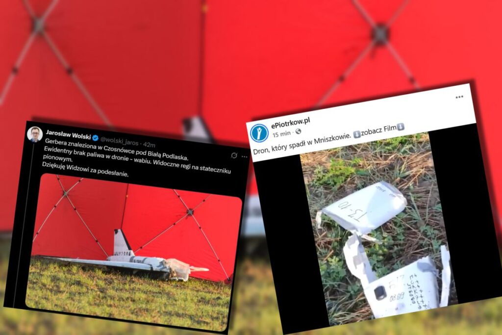 TVP Info reported multiple drones found in the Lublin region, where the local police discovered one in Czosnówka near Biała Podlaska. Defense expert Jarosław Wolski claimed it was a Gerbera, or “bug,” drone, clearly lacking fuel.