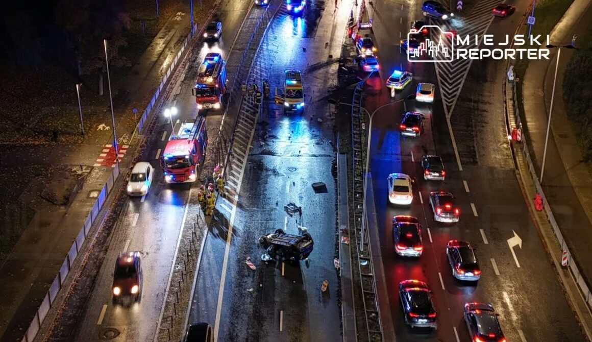 On 18 October at 19:06, a Dacia driven by Russian embassy staff, not protected by diplomatic immunity, lost control on Wisłostrad street at a viaduct intersection with Krasińskiego avenue. It struck high‑energy barriers, fragments flew onto the opposite lane, damaging a Mazda and a Volvo. The Dacia then collided with a BMW heading toward the city centre and overturned onto a roof.