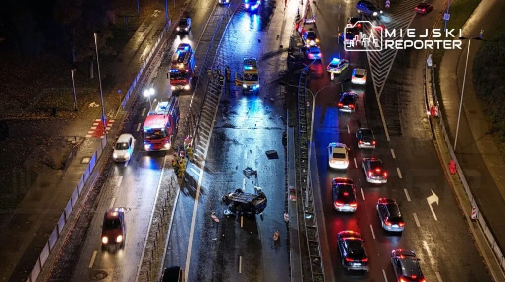 On 18 October at 19:06, a Dacia driven by Russian embassy staff, not protected by diplomatic immunity, lost control on Wisłostrad street at a viaduct intersection with Krasińskiego avenue. It struck high‑energy barriers, fragments flew onto the opposite lane, damaging a Mazda and a Volvo. The Dacia then collided with a BMW heading toward the city centre and overturned onto a roof.
