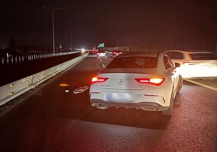 The fallen barriers hit a Skoda driven by a 35‑year‑old from Siedlce County that was traveling correctly. While checking the scene, a 23‑year‑old Mercedes from Warsaw swerved to avoid the parked car, slamming into the concrete shoulder and stopping in the middle of the road.