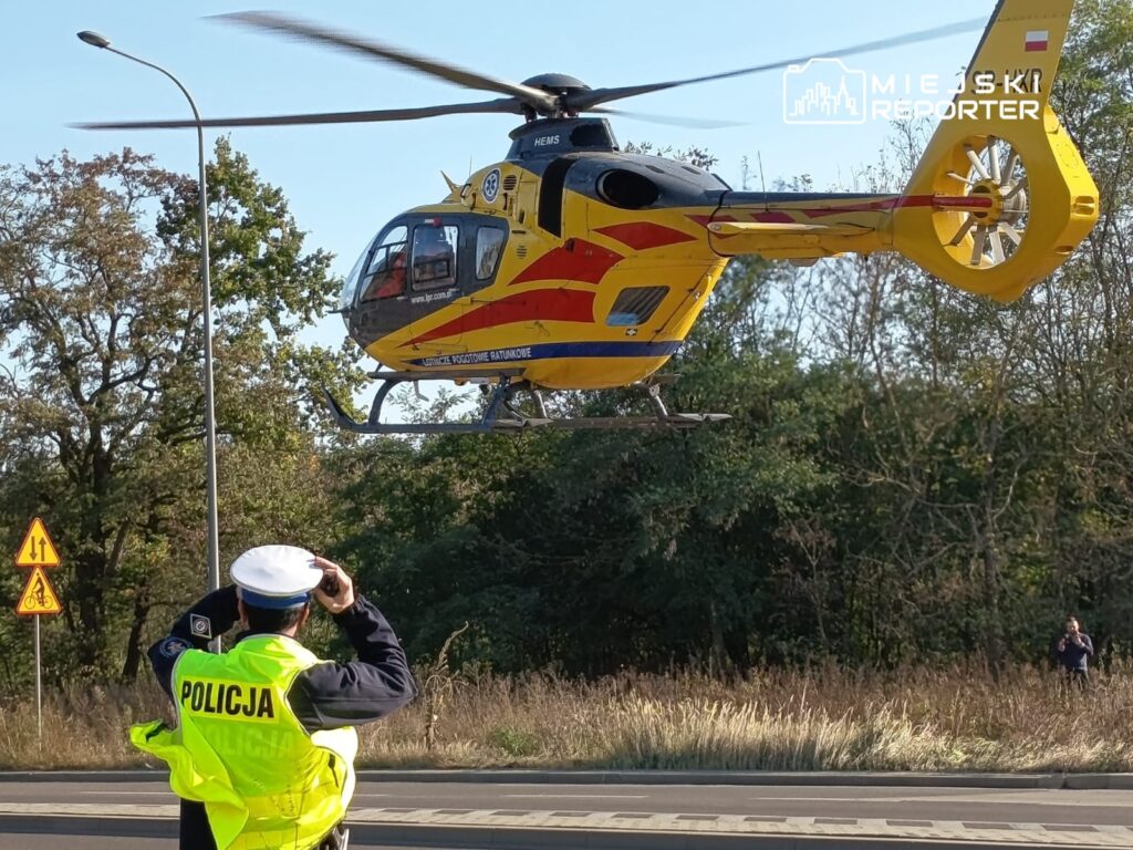 The crash involved three passenger cars on Wał Miedzeszyński street near Czarnuszka, occurring at roughly 2:40 pm. Six people were injured, including children, and one was airlifted to hospital by the Air Rescue Service helicopter.