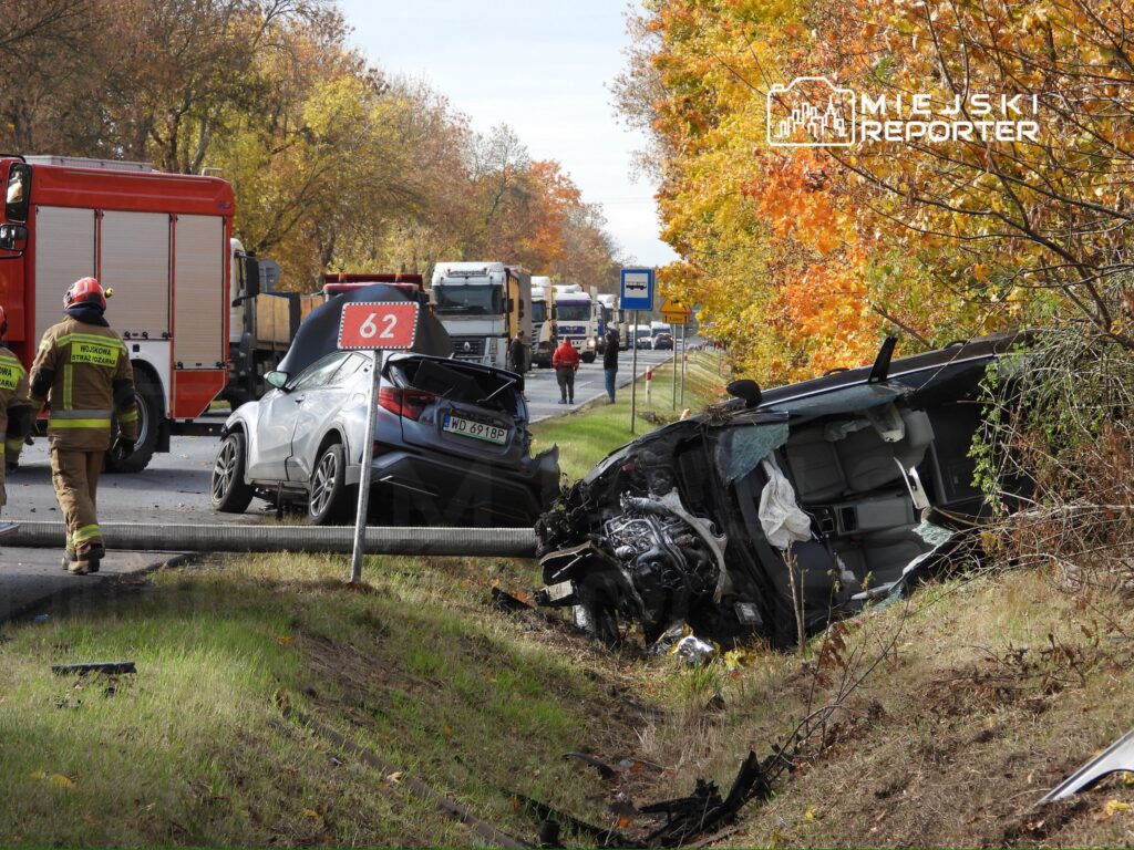 A Toyota and an Audi collided on the 216 km stretch of DK62 at the intersection with the municipal road Prosta, near the town of Karolino. The impact caused the Audi to roll into a ditch and ruptured a concrete streetlight.