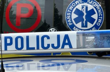 Two fire brigade teams from APoż, a medical rescue unit, and the police secured the scene, disconnected batteries, and cleared bodywork from the roadway.