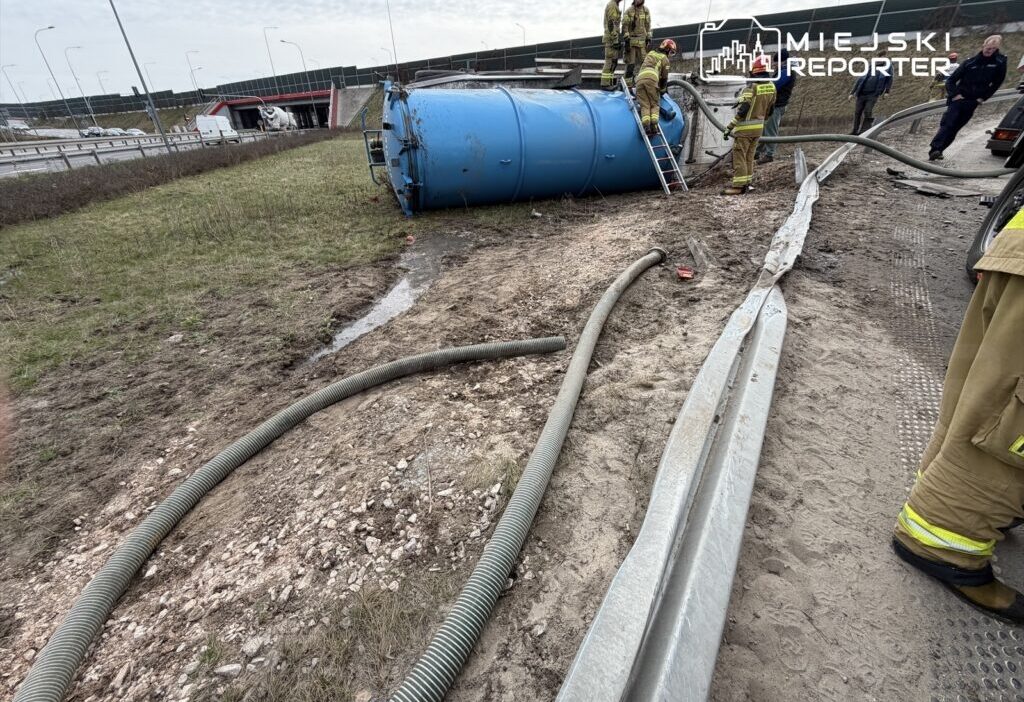 A sewage truck lost control and fell from a flyover on Wał Miedzeszyński in Warsaw on Thursday, April 2nd, causing significant traffic delays.