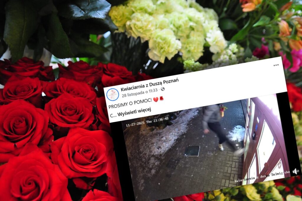 According to ePoznań reports, the incident occurred on the night of 27 November in Poznan when a gang member destroyed a flower machine owned by a local florist. The attacker selected bouquets before ransacking the kiosk and stealing items, leaving shattered glass and doors in disarray.