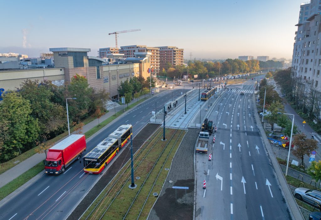 The comprehensive upgrade of Słomińskiego Street is now progressing as the tramways have finished track replacement and the road works will address curbs before laying new asphalt.