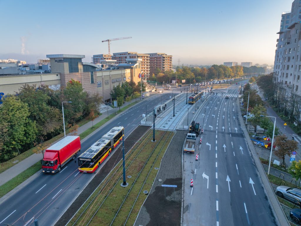 The comprehensive upgrade of Słomińskiego Street is now progressing as the tramways have finished track replacement and the road works will address curbs before laying new asphalt.