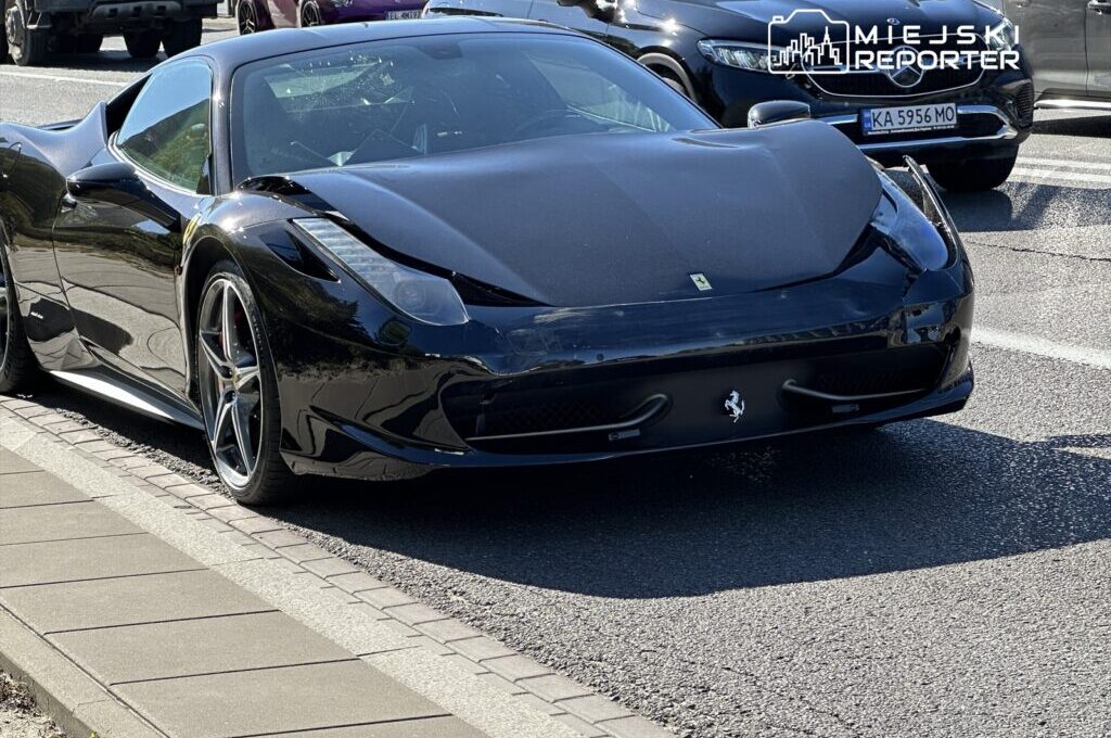 A three-car collision occurred on September 26 at approximately 13:40 in Aleje Jerozolimskie near Ulica Śmigłowca, heading toward the city center. The speeding Ferrari 458 Italia struck the rear of an Opel, which was then pushed into a BMW. No injuries were reported. The Ferrari driver admitted fault, and damages will be covered by his insurance.