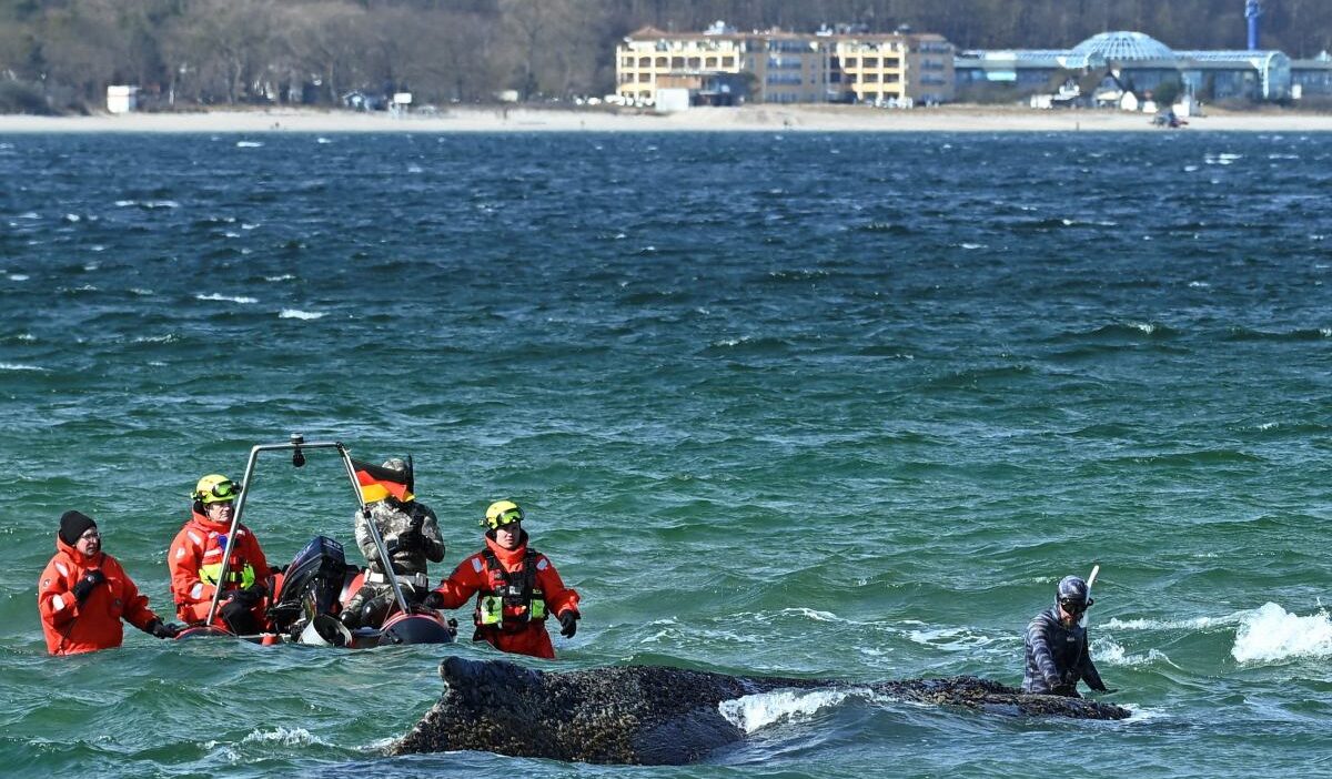 German experts confirmed Tuesday that the humpback whale, stranded near Wismar on the Baltic Sea, cannot free itself. The whale is lying in very shallow water.