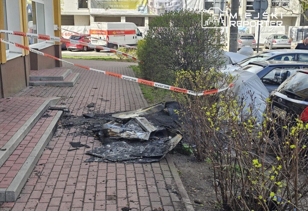 Strong winds ripped elements of the roofing from an apartment building located on Kubusia Puchatka Street in Pruszków. Fragments of the roofing and other debris fell onto the sidewalk in front of the building.