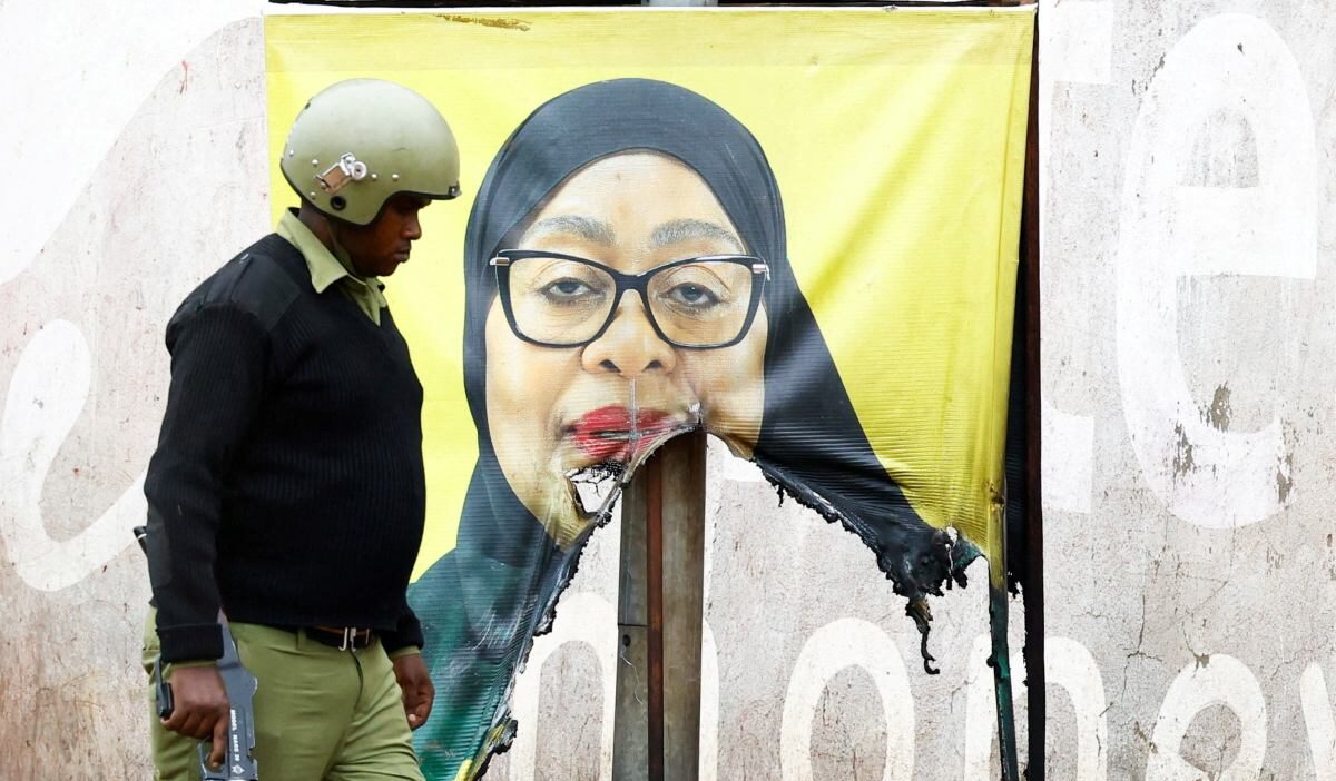 For a full week after the vote, demonstrators tore down posters of Hassan and set government buildings on fire. Opponents were excluded from the ballot, with the main opposition party Chadema barred for not signing the electoral code and TunduLissu’s leader arrested on treason charges.
