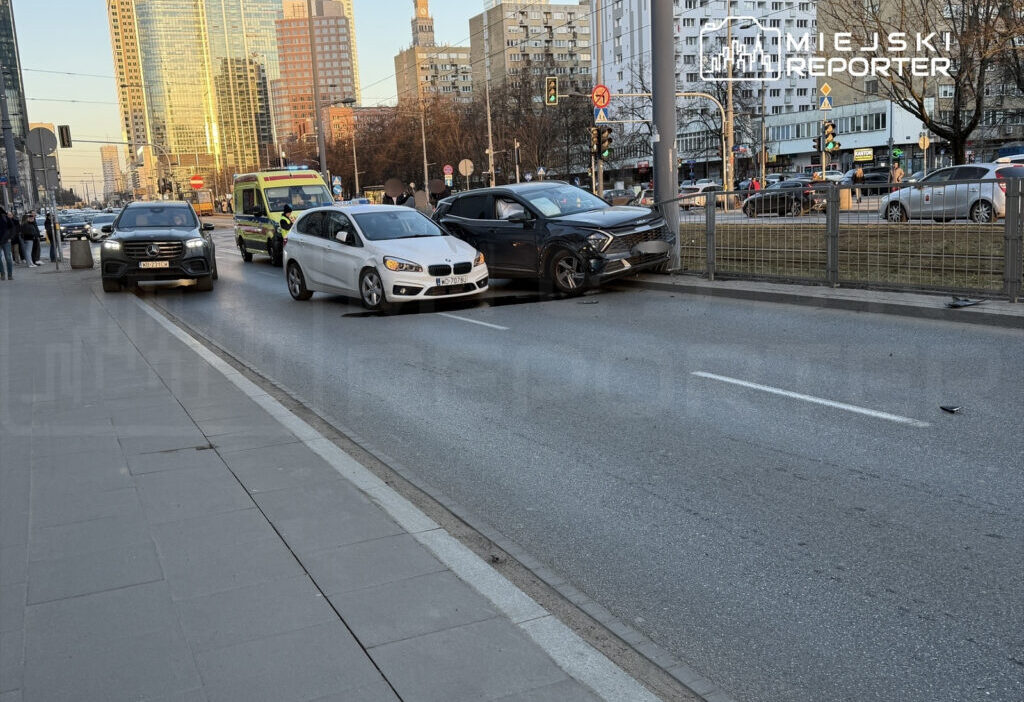 On Thursday, March 5, around 4:30 PM, three cars collided on Prosta Street in Warsaw, near the intersection with Żelazna Street heading toward Rondo Daszyński. One police officer in an unmarked police vehicle was injured in the crash.
