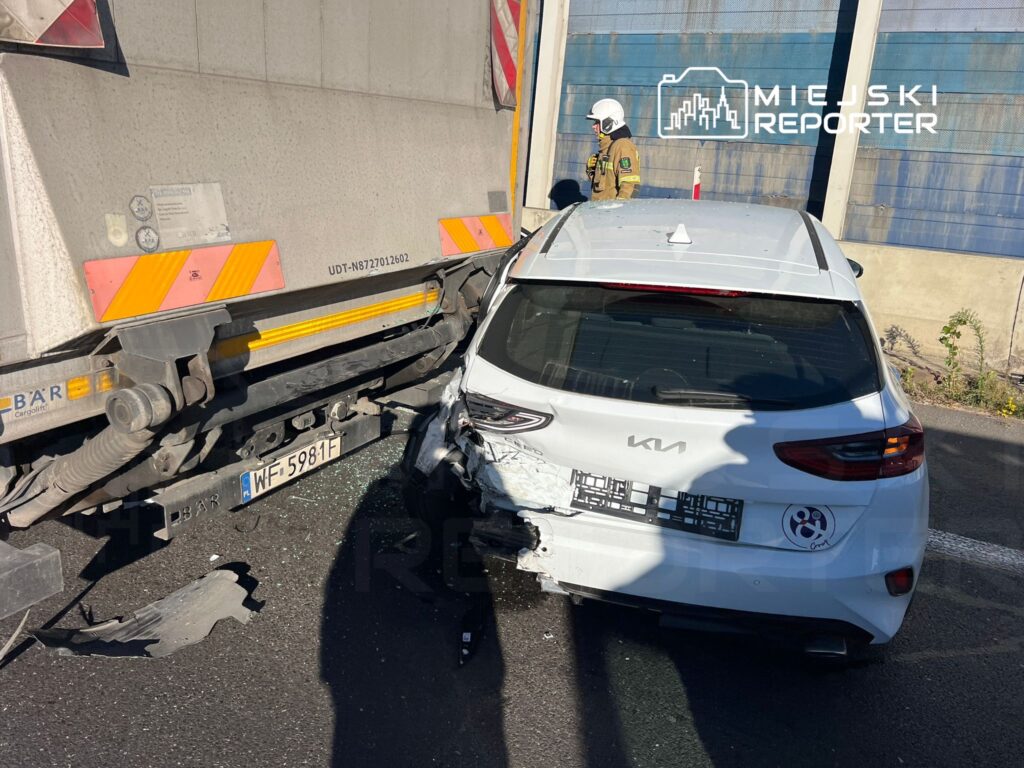 The collision has paralyzed traffic in the area, with two lanes toward the Grota-Roweckiego Bridge blocked, leading to major congestion.