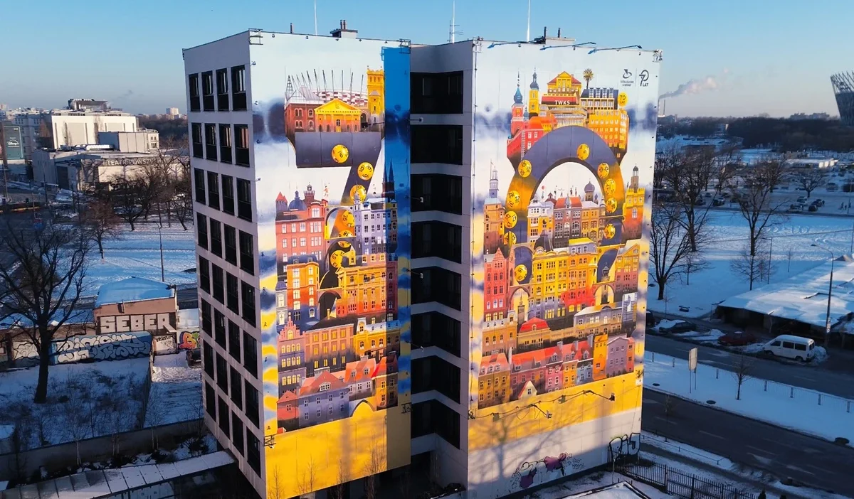 During the ceremony, a model of a mural designed by Tytus Brzozowski was presented. The complete artwork can be seen on two walls of a building at Zamoyskiego 37 in Warsaw’s Praga Północ district. The mural covers 604 square meters and represents one of the artist’s largest public space works.