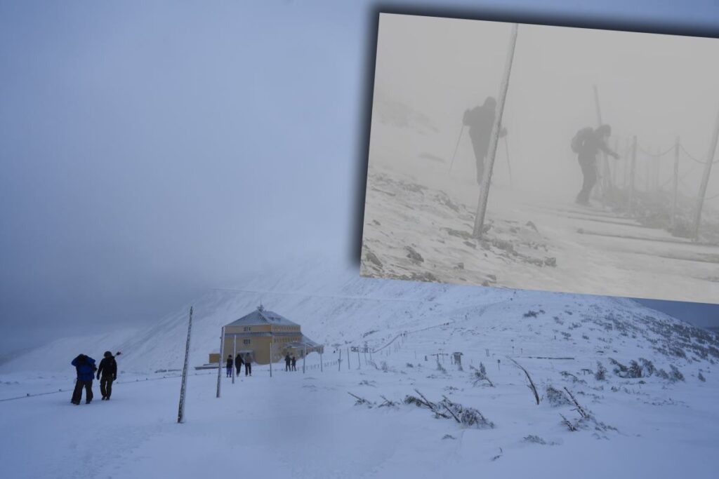 Karkonoski National Park published a recording on social media showing two people descending from the trail on Śnieżka without proper equipment. According to the post, temperatures in the sun are positive during the day but drop below zero at night, causing melted snow to refreeze. The post notes that without crampons, walking and descending some trails can be problematic, especially descending from Śnieżka on the slightly gentler Czech side.