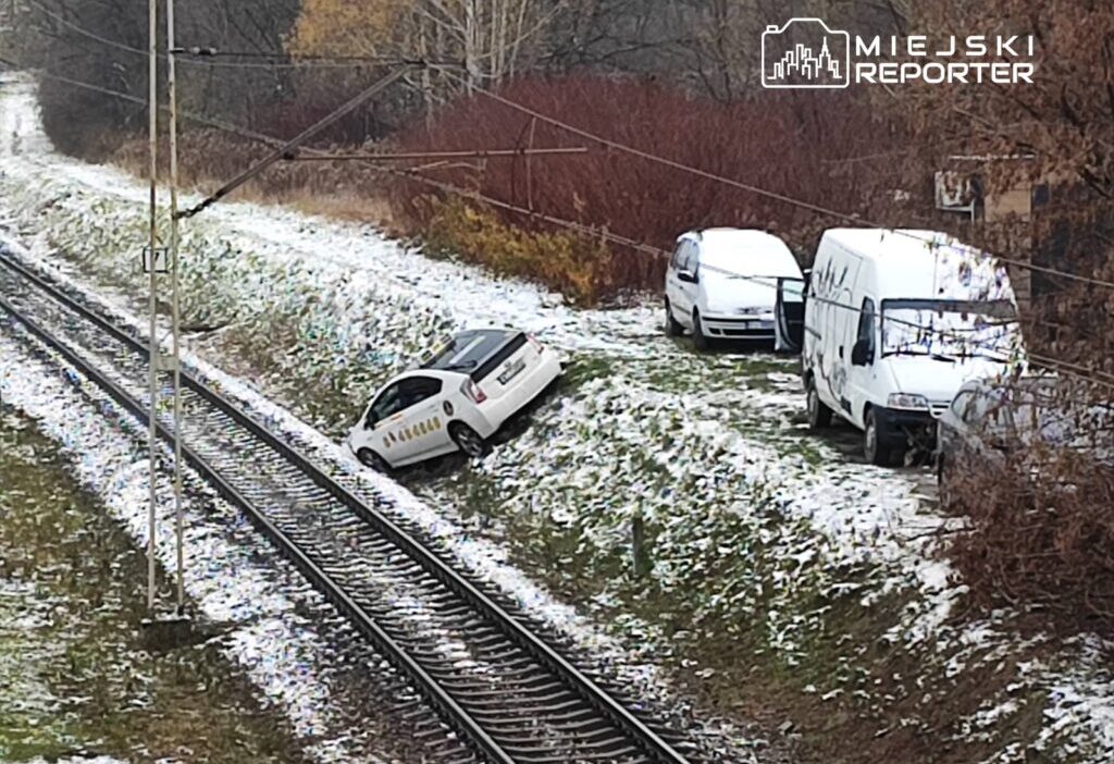 On 25 November at about 9 a.m., a Toyota slid down a snowy embankment under the Alei Jerozolimskich viaduct and stopped beside Warsaw Commuter Railway tracks.