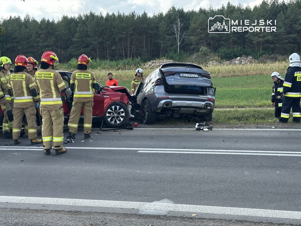 Four vehicles crashed on the DK61 near Dzierżenina today, injuring three people including a child, who partially blocked the highway in both directions.