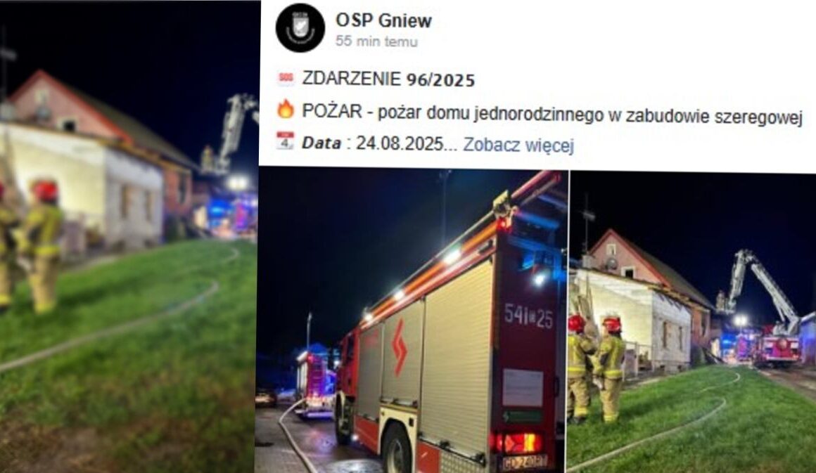 A fire erupted in a single-family home located on Górny Podmur Street in Gniew, Pomeranian Voivodeship, around 3:00 AM on Saturday night (August 23 to 24). State and volunteer fire units were immediately dispatched to the scene.