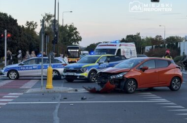 On Friday, Oct. 3 at about 16:45, Tram Line 28 hit a Peugeot on the intersection of Broniewski and Perzyńskiego, injuring the driver and halting tram service until 17:22.