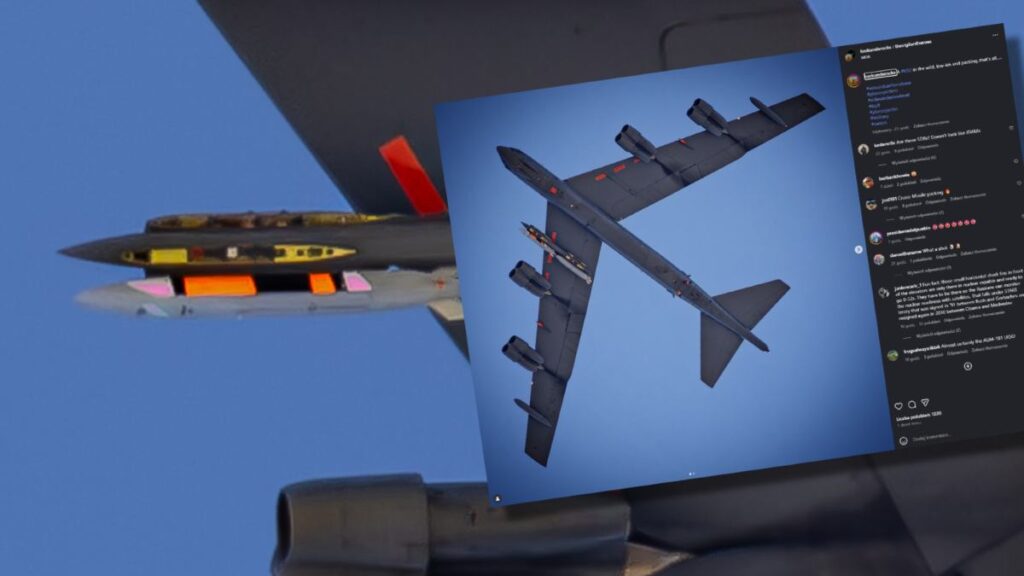 A photograph of a B‑52 carrying secret SRBMs over an unpopulated area near the Nellis Air Force Range went viral on October 29, 2023, while former President Trump hinted at renewed nuclear weapons testing.