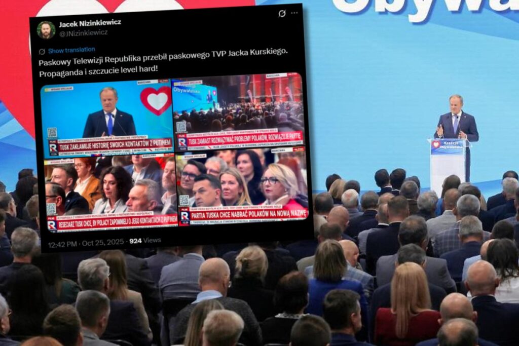 Television channel TV Republika aired the convention with distinctive striped overlays on the screen. Commentator Jacek Nizinkiewicz from Rzeczpospolita remarked that “the striped TV Republika outpaced the striped TVP of Jacek Kurski” and described the programme as “propaganda and garbage at a hard level.” The broadcast also included on‑screen slogans such as “Tusk the Rejecian wants Poles to forget his contacts with Putin” and “Tusk lies about his contacts with Putin.”