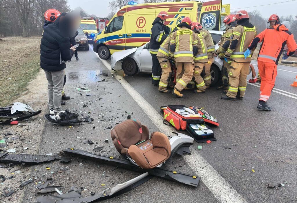 In the town of Nieporęt in Legionowo County, a BMW and a Hyundai crashed, resulting in six people – three adults and three children – admitted to hospital.